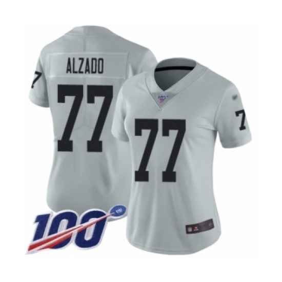>Women's Oakland Raiders #77 Lyle Alzado Limited Silver Inverted Legend 100th Season Football Jersey