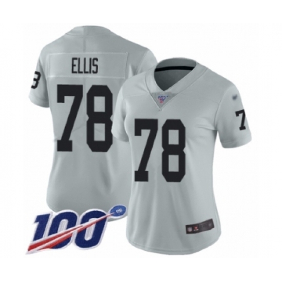 >Women's Oakland Raiders #78 Justin Ellis Limited Silver Inverted Legend 100th Season Football Jersey