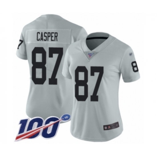 >Women's Oakland Raiders #87 Dave Casper Limited Silver Inverted Legend 100th Season Football Jersey