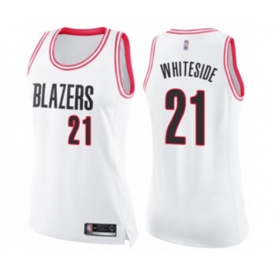 Women's Portland Trail Blazers #21 Hassan Whiteside Swingman White Pink Fashion Basketball Jersey