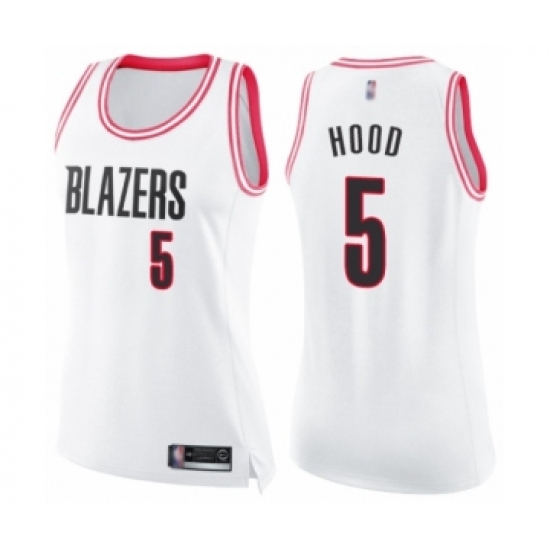 Women's Portland Trail Blazers #5 Rodney Hood Swingman White Pink Fashion Basketball Jersey