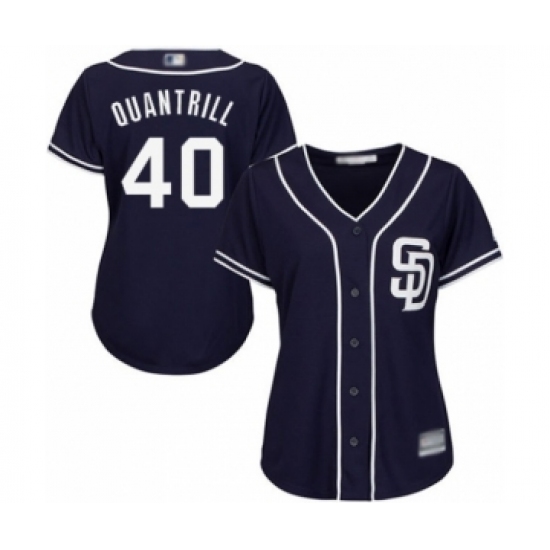 >Women's San Diego Padres #40 Cal Quantrill Authentic Navy Blue Alternate 1 Cool Base Baseball Player Jersey