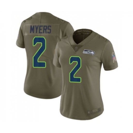 >Women's Seattle Seahawks #2 Jason Myers Limited Olive 2017 Salute to Service Football Jersey