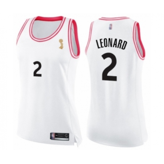Women's Toronto Raptors #2 Kawhi Leonard Swingman White Pink Fashion 2019 Basketball Finals Champions Jersey