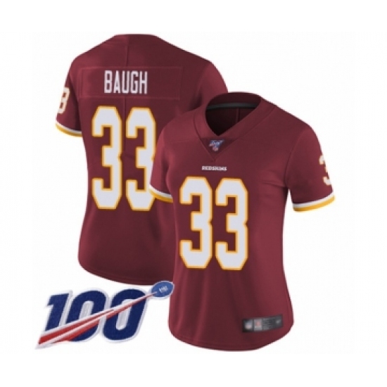 >Women's Washington Redskins #33 Sammy Baugh Burgundy Red Team Color Vapor Untouchable Limited Player 100th Season Football Jersey