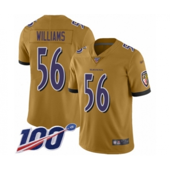 Men's Baltimore Ravens #56 Tim Williams Limited Gold Inverted Legend 100th Season Football Jersey
