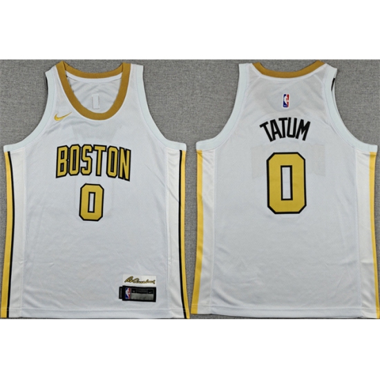 Men's Boston Celtics #0 Jayson Tatum White 2024 Finals Champions City Edition Stitched Basketball Jersey