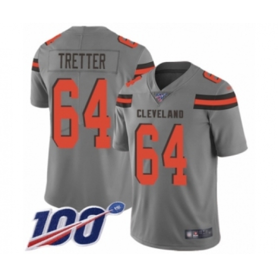 >Youth Cleveland Browns #64 JC Tretter Limited Gray Inverted Legend 100th Season Football Jersey
