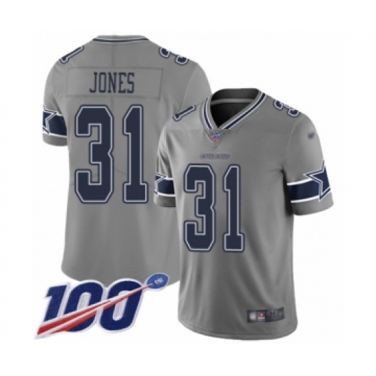 Men's Dallas Cowboys #31 Byron Jones Limited Gray Inverted Legend 100th Season Football Jersey