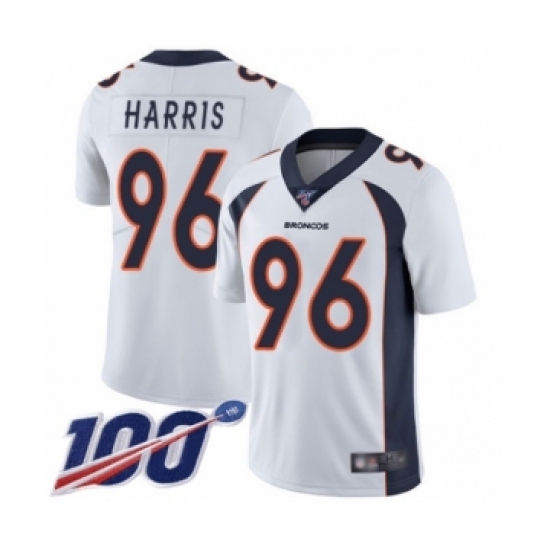 >Youth Denver Broncos #96 Shelby Harris White Vapor Untouchable Limited Player 100th Season Football Jersey