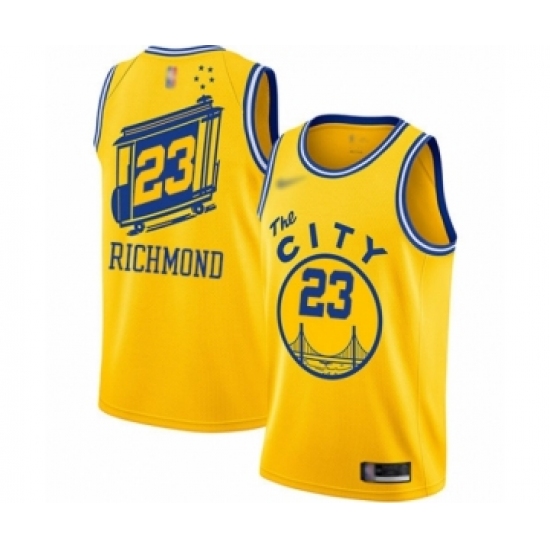Men's Golden State Warriors #23 Mitch Richmond Authentic Gold Hardwood Classics Basketball Jersey - The City Classic Edition