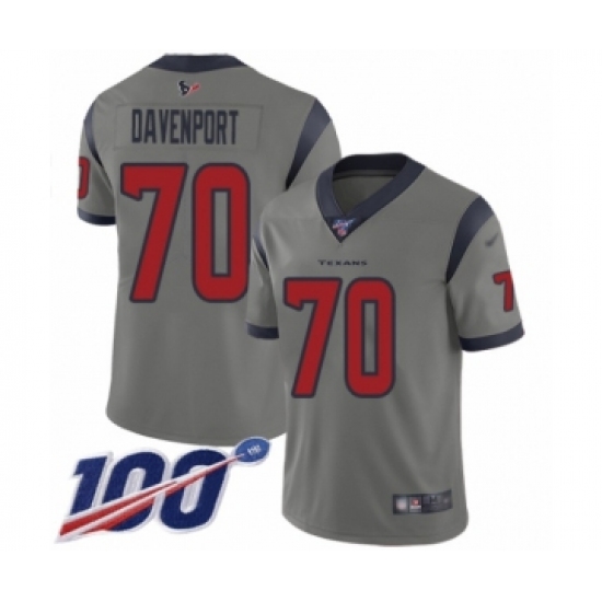 >Youth Houston Texans #70 Julien Davenport Limited Gray Inverted Legend 100th Season Football Jersey
