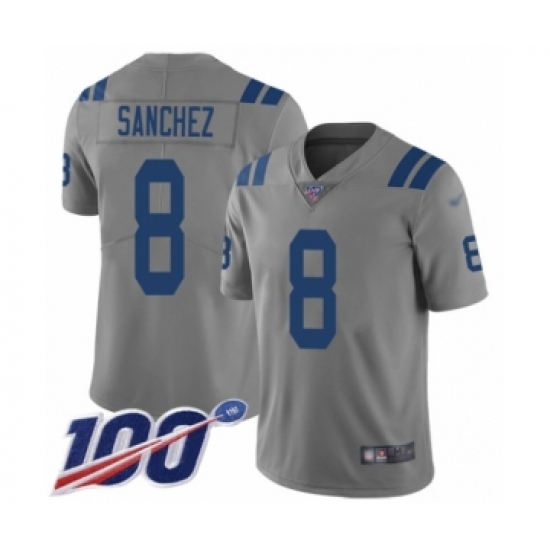 >Youth Indianapolis Colts #8 Rigoberto Sanchez Limited Gray Inverted Legend 100th Season Football Jersey