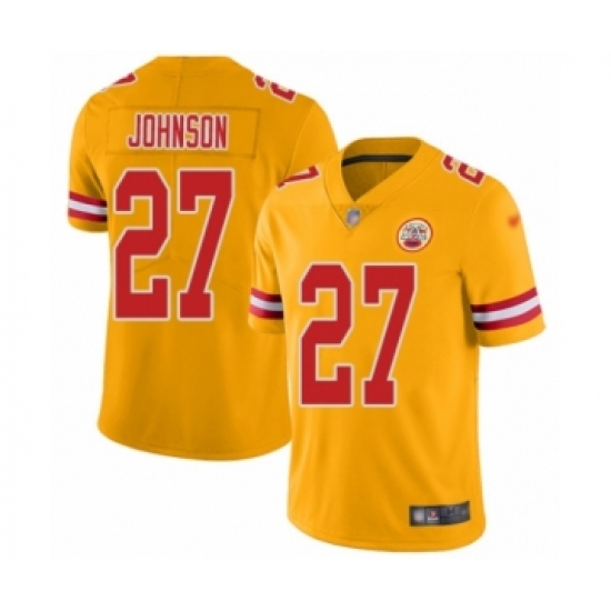 >Youth Kansas City Chiefs #27 Larry Johnson Limited Gold Inverted Legend Football Jersey