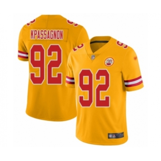 >Youth Kansas City Chiefs #92 Tanoh Kpassagnon Limited Gold Inverted Legend Football Jersey
