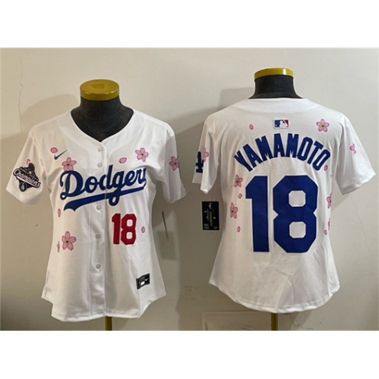 Women's Los Angeles Dodgers #18 Yoshinobu Yamamoto White 2025 Tokyo Series Limited Stitched Baseball Jersey