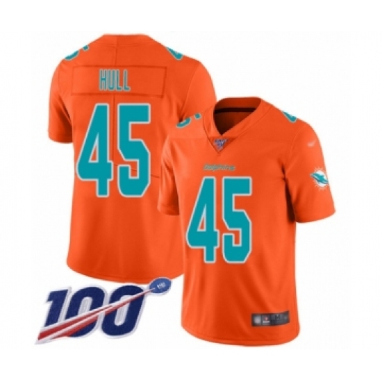 >Youth Miami Dolphins #45 Mike Hull Limited Orange Inverted Legend 100th Season Football Jersey
