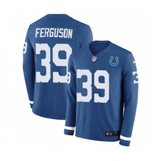 >Youth Nike Indianapolis Colts #39 Josh Ferguson Limited Blue Therma Long Sleeve NFL Jersey