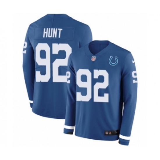 Youth Nike Indianapolis Colts #92 Margus Hunt Limited Blue Therma Long Sleeve NFL Jersey