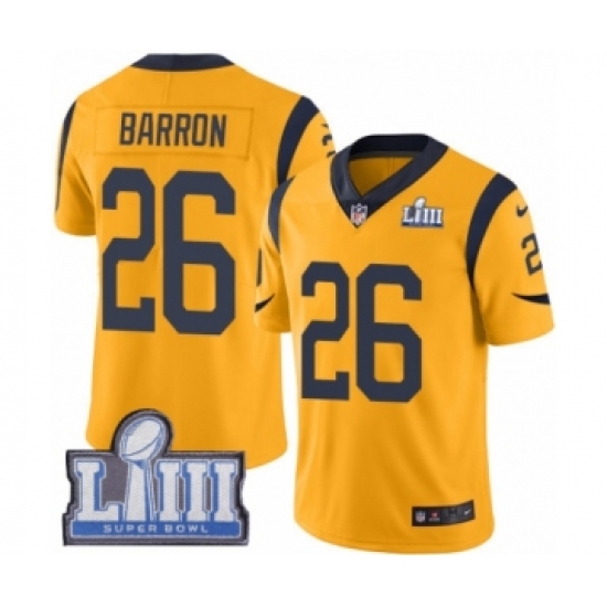 Youth Nike Los Angeles Rams #26 Mark Barron Limited Gold Rush Vapor Untouchable Super Bowl LIII Bound NFL Jersey