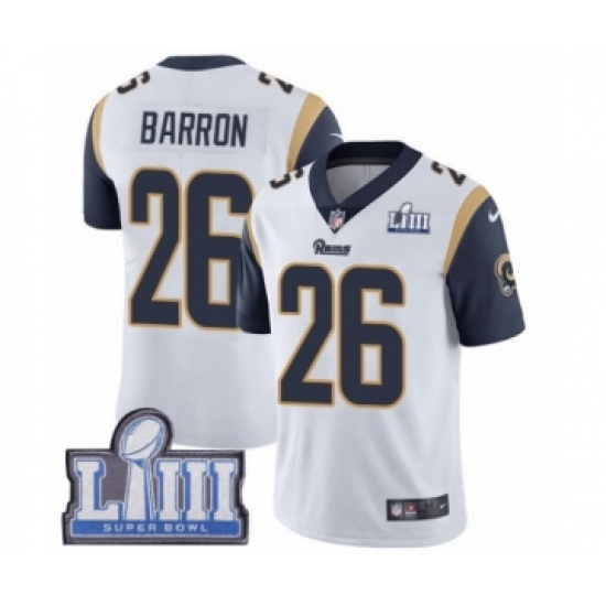 Youth Nike Los Angeles Rams #26 Mark Barron White Vapor Untouchable Limited Player Super Bowl LIII Bound NFL Jersey