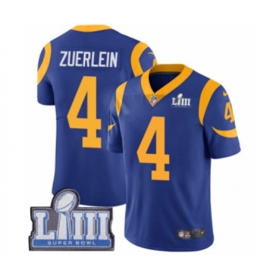 Youth Nike Los Angeles Rams #4 Greg Zuerlein Royal Blue Alternate Vapor Untouchable Limited Player Super Bowl LIII Bound NFL Jersey