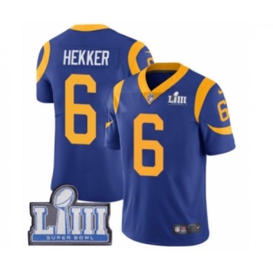 Youth Nike Los Angeles Rams #6 Johnny Hekker Royal Blue Alternate Vapor Untouchable Limited Player Super Bowl LIII Bound NFL Jersey