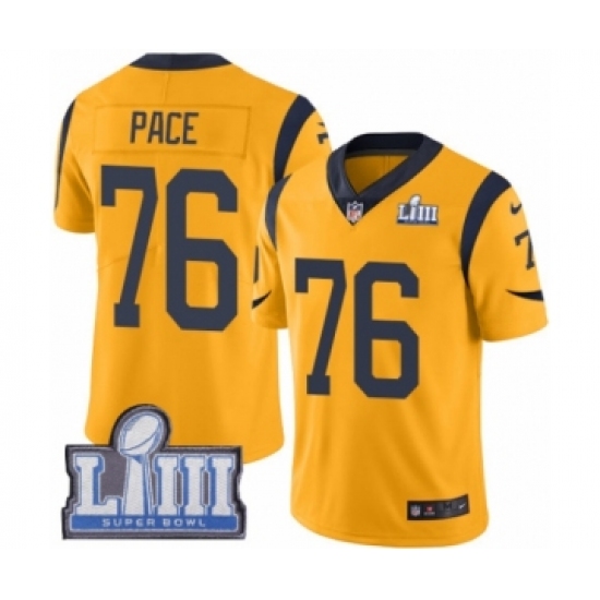 >Youth Nike Los Angeles Rams #76 Orlando Pace Limited Gold Rush Vapor Untouchable Super Bowl LIII Bound NFL Jersey