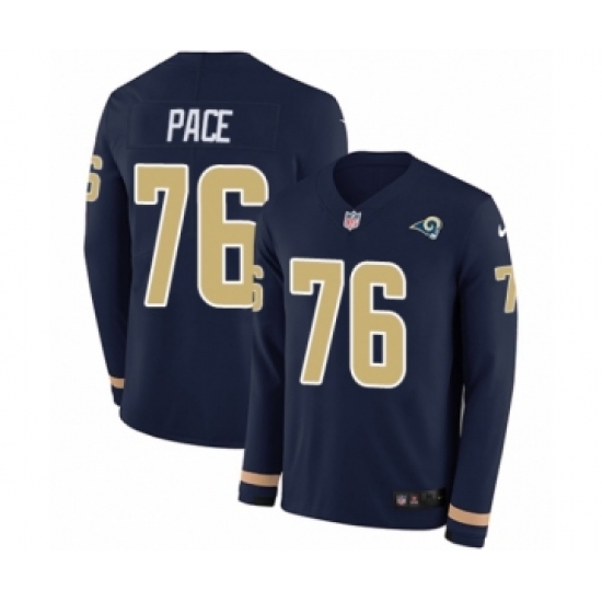 >Youth Nike Los Angeles Rams #76 Orlando Pace Limited Navy Blue Therma Long Sleeve NFL Jersey