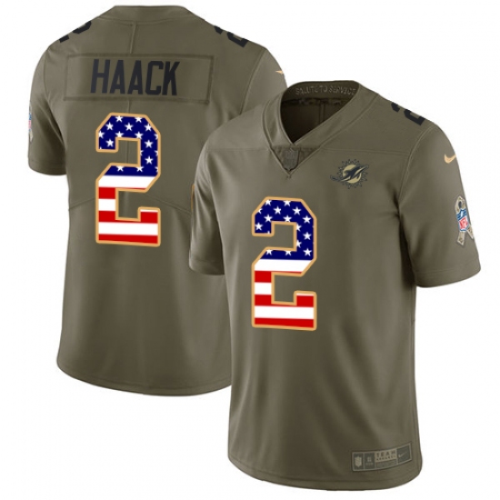 Youth Nike Miami Dolphins #2 Matt Haack Limited Olive USA Flag 2017 Salute to Service NFL Jersey