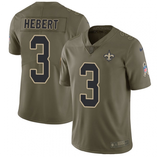 Home>NFL>New Orleans Saints>Bobby Hebert>Youth Nike New Orleans Saints #3 Bobby Hebert Limited Olive 2017 Salute to Service NFL Jersey