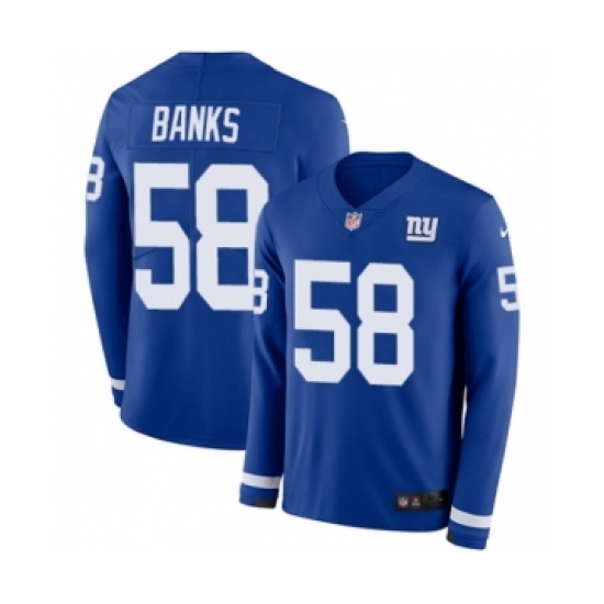 >Youth Nike New York Giants #58 Carl Banks Limited Royal Blue Therma Long Sleeve NFL Jersey