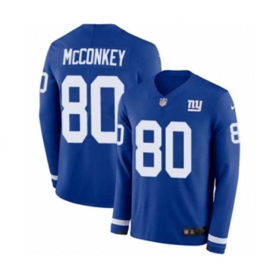 >Youth Nike New York Giants #80 Phil McConkey Limited Royal Blue Therma Long Sleeve NFL Jersey
