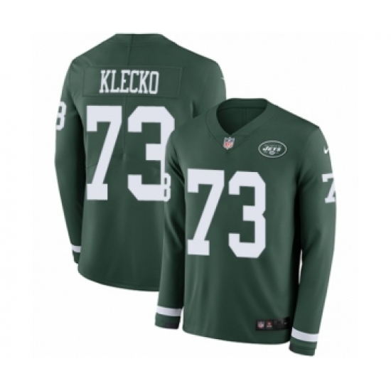 Men's Nike New York Jets #73 Joe Klecko Limited Green Therma Long Sleeve NFL Jersey