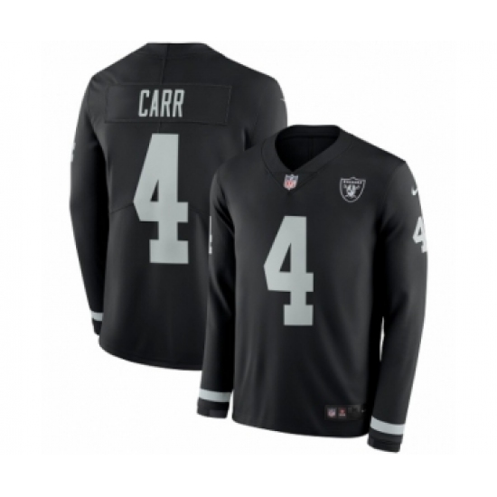 >Youth Nike Oakland Raiders #4 Derek Carr Limited Black Therma Long Sleeve NFL Jersey