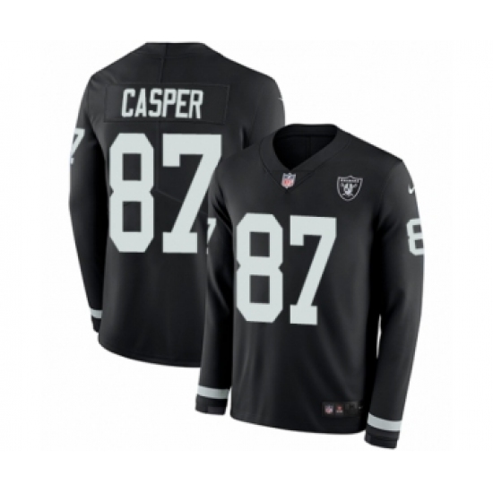 >Youth Nike Oakland Raiders #87 Dave Casper Limited Black Therma Long Sleeve NFL Jersey
