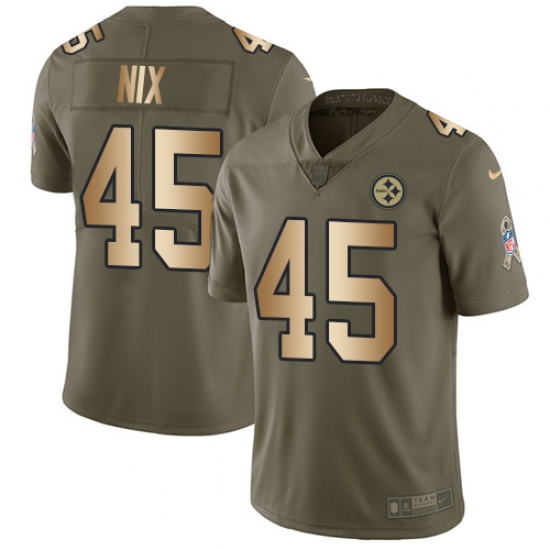 Home>NFL>Pittsburgh Steelers>Roosevelt Nix>Youth Nike Pittsburgh Steelers #45 Roosevelt Nix Limited Olive/Gold 2017 Salute to Service NFL Jersey