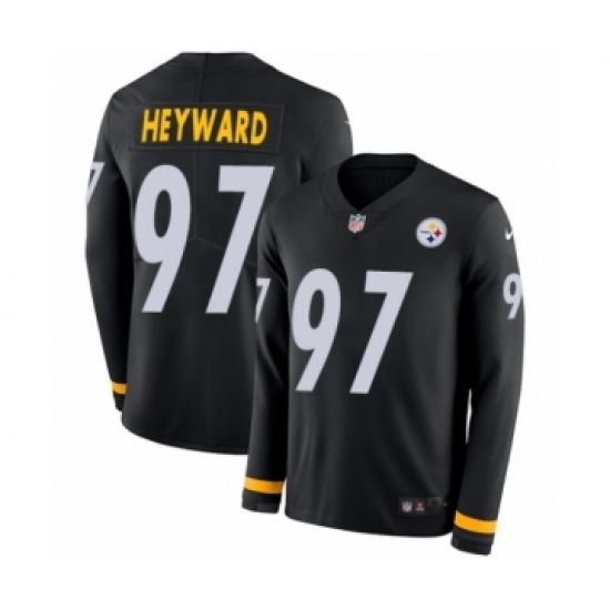 >Youth Nike Pittsburgh Steelers #97 Cameron Heyward Limited Black Therma Long Sleeve NFL Jersey