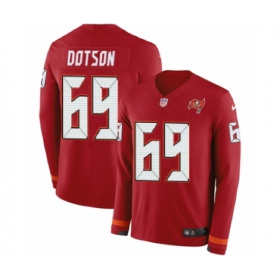 Youth Nike Tampa Bay Buccaneers #69 Demar Dotson Limited Red Therma Long Sleeve NFL Jersey