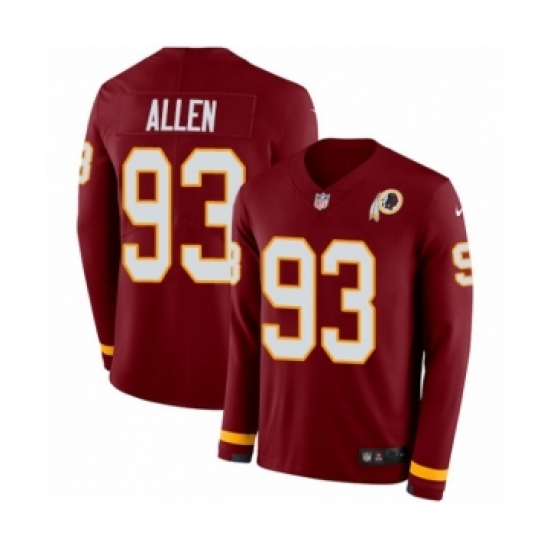 >Youth Nike Washington Redskins #93 Jonathan Allen Limited Burgundy Therma Long Sleeve NFL Jersey