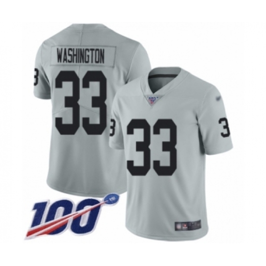 Men's Oakland Raiders #33 DeAndre Washington Limited Silver Inverted Legend 100th Season Football Jersey