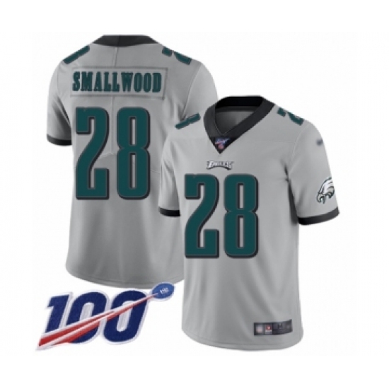 >Youth Philadelphia Eagles #28 Wendell Smallwood Limited Silver Inverted Legend 100th Season Football Jersey