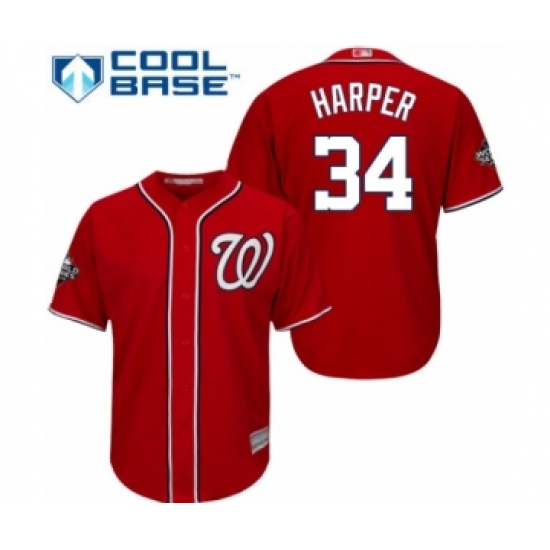 Youth Washington Nationals #34 Bryce Harper Authentic Red Alternate 1 Cool Base 2019 World Series Bound Baseball Jersey