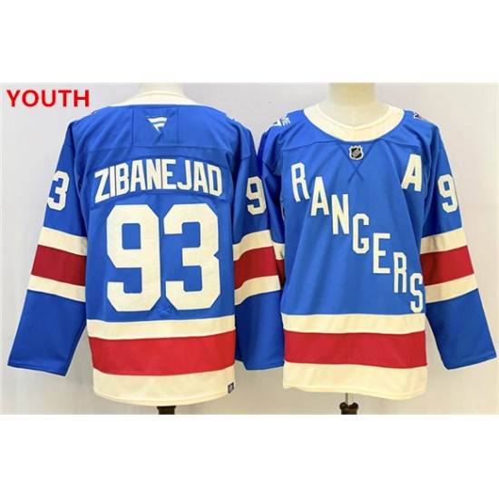 >Youth new york rangers #93 mika zibanejad blue with a stitched hockey jersey