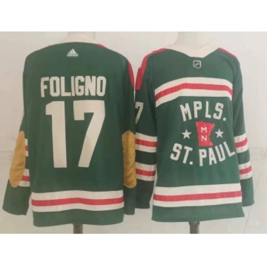 >Men Minnesota Wild 17 Foligno Green Classic Edition 2022 Adidas NHL Jersey