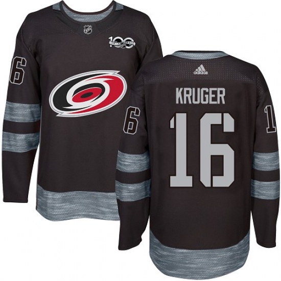 Home>NHL>Carolina Hurricanes>Marcus Kruger>Men's Adidas Carolina Hurricanes #16 Marcus Kruger Authentic Black 1917-2017 100th Anniversary NHL Jersey