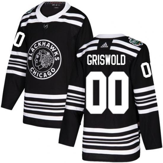 >Men's Adidas Chicago Blackhawks #00 Clark Griswold Authentic Black 2019 Winter Classic NHL Jersey