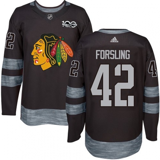 Men's Adidas Chicago Blackhawks #42 Gustav Forsling Authentic Black 1917-2017 100th Anniversary NHL Jersey
