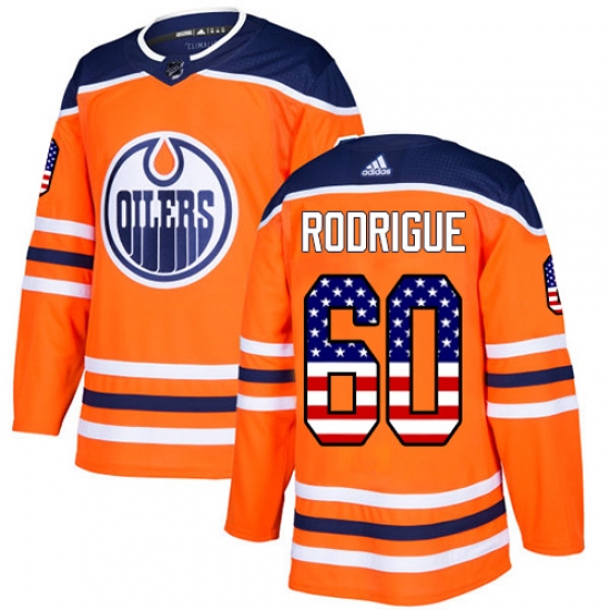 Men's Adidas Edmonton Oilers #60 Olivier Rodrigue Authentic Orange USA Flag Fashion NHL Jersey