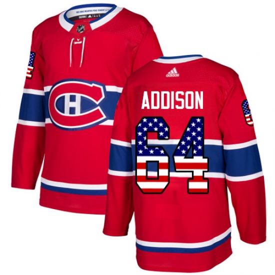 Home>NHL>Montreal Canadiens>Jeremiah Addison>Men's Adidas Montreal Canadiens #64 Jeremiah Addison Authentic Red USA Flag Fashion NHL Jersey